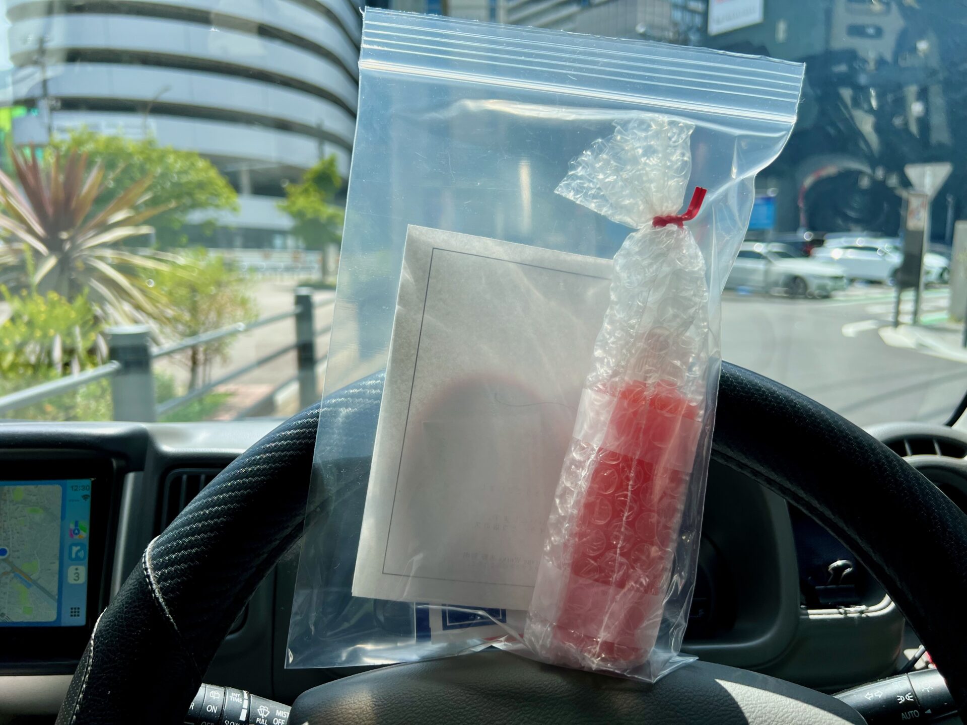 今回の施工場所は屋根付きの駐車場だったので、持参した氷を入れたマイボトル 2 本を飲み干してしまうほどではありませんでした。